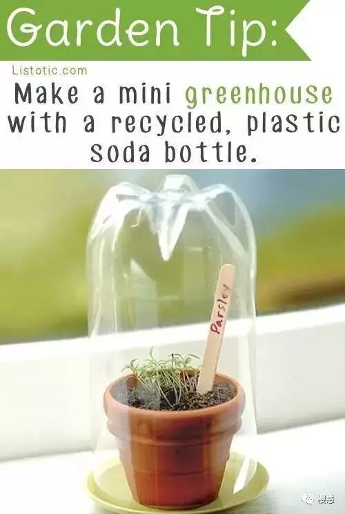 在育苗温度不够的时候,取塑料可乐瓶的3/4用来做一个迷你阳光房,来罩住育苗的小花盆,让孩子一起参与这个制作吧,孩子一定很乐意。