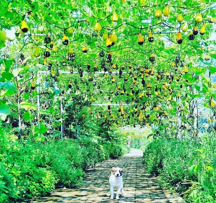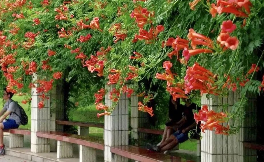 各种爬藤植物非常适合用来装扮长廊,绿油油的叶子爬满廊架,形成曲径通幽的长廊,夏天防晒,秋天成景,有了它能增加游客到访率。