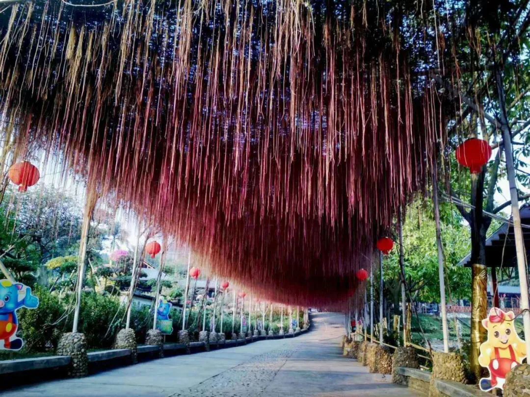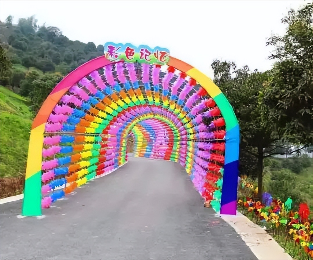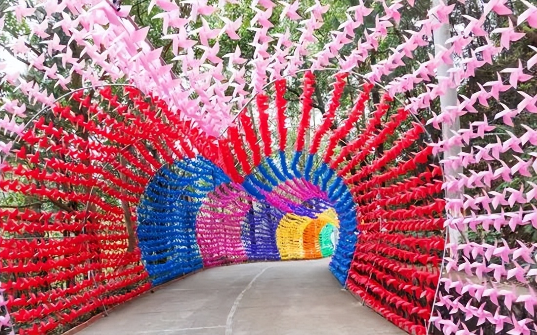 可以用各种颜色的风车、风筝、油纸伞等来装饰,这样的长廊还是很美观的,也是游客爱拍照打卡的地点!