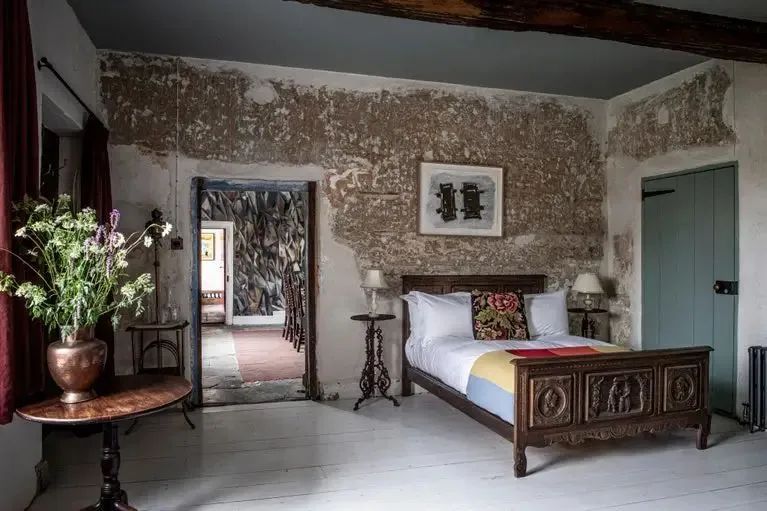 这处农场历史可以追溯到15世纪。起初购置时是一片废墟,墙皮断裂,多处屋顶塌陷。其中有栋农房还是英国的国家二级文物,感觉一场暴风骤雨就能把它摧毁。Iwan和Manuela将它买下后,花费近四年时间来了一场废旧之地变身艺术空间的梦幻改造。