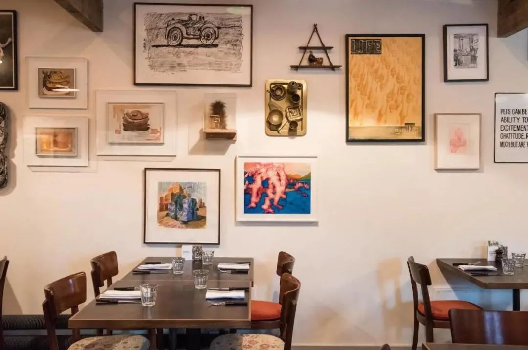 原来的牛棚和挤奶场,改成了餐厅。不仅采用农场里的食材保证有机健康,还不忘添加特色和创意。餐厅里装饰着各种艺术作品,墙壁上是艺术家古雷默·奎特卡画的壁画,这是他在农场足足住了5个星期,才完成的作品。