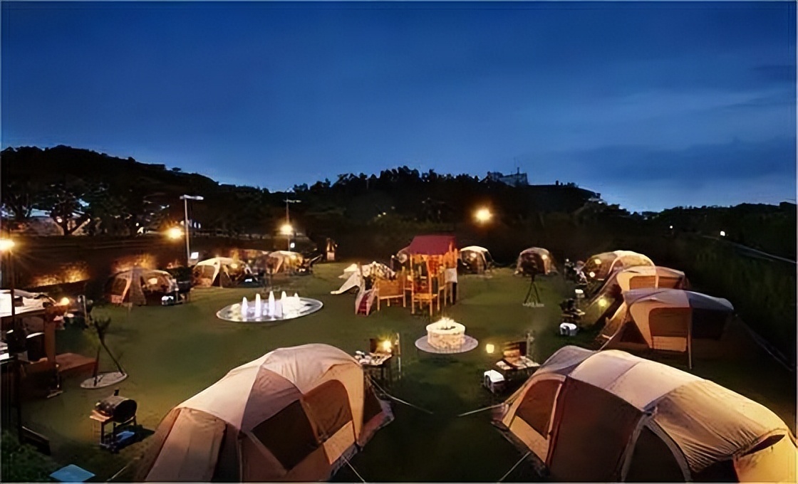 营地灯光设计需根据不同功能区的要求布置,如入口区突出标识,引导指向;服务区建筑入口灯光要足;休闲娱乐区则需要夜间活动,应配制高杆灯等能提供充足照明的设备。