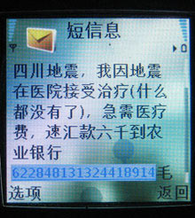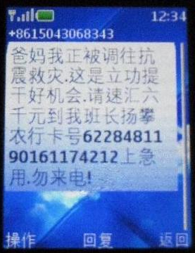 当收到“我在前方救援,身上钱已捐给灾区,请汇款帮忙。”类似内容短信时,请一定要核实情况,不要轻易汇款。