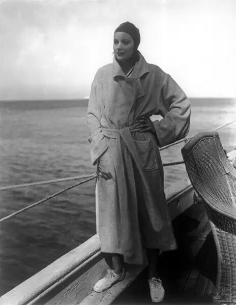照片拍摄于1929年,此时的嘉宝还没有拍摄那部著名的《瑞典女王》,这是她主演的倒数第二部默片。片中她与自己的爱人乘着游艇畅游南海,过着田园诗一般的幸福生活,照片中的她,女王范儿十足地凝视前方。而正当她在拍摄本片的同时,她的情人约翰•吉尔伯特却和英娜•克莱尔结了婚。当这一令人震惊的消息传到嘉宝耳中时,她只是淡淡地表示:“愿他无比幸福。”