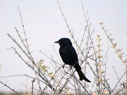 下图叉尾卷尾,是雀形目的鸟,会模仿32种鸟类的报警鸣叫,2009年被列入《世界自然保护联盟》鸟类红色名录。进名录不一定就是濒危,后来几天里常见到它们。