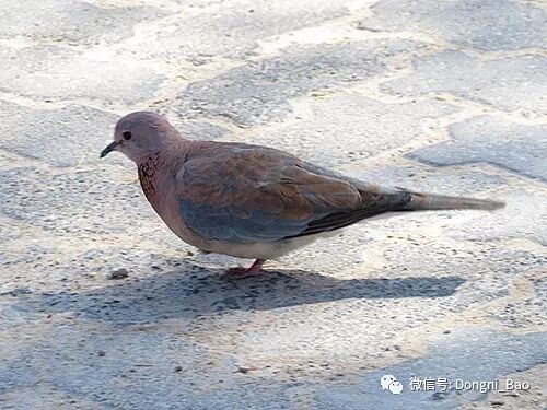 下图是栖息于荒漠、半荒漠地区的绿洲树丛间以及村庄及小镇附近的棕斑鸠。
