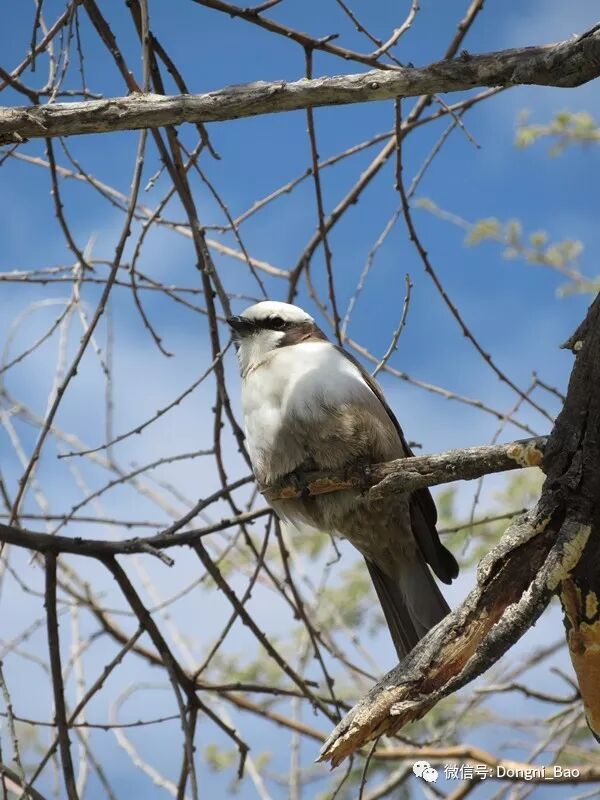 下图的北部白冠伯劳,也叫白背伯劳,活动范围从南苏丹,到埃塞俄比亚、坦桑尼亚都可见到。
