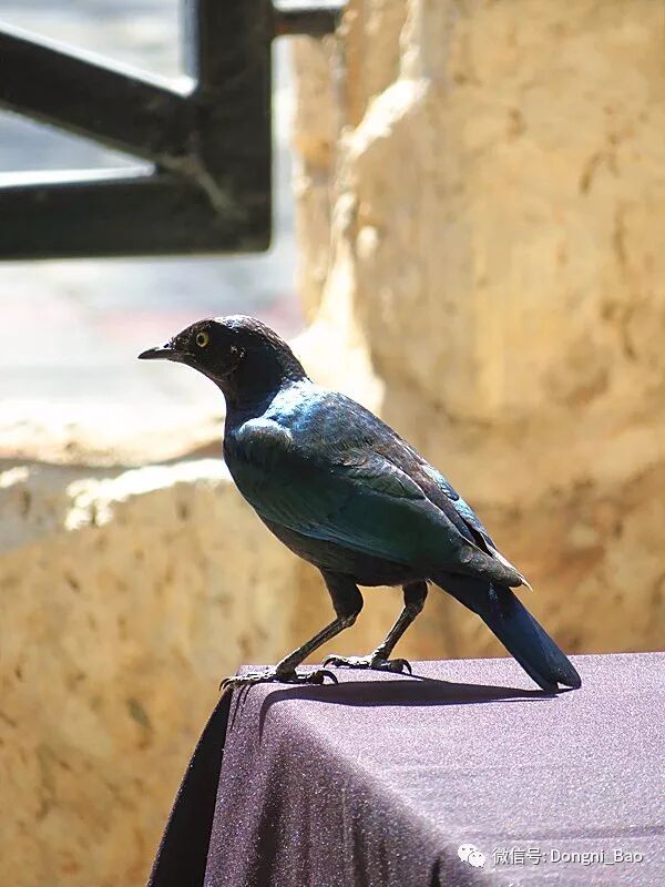 和海角椋鸟特别相似的是蓝耳丽椋鸟,它们都是金属蓝,但是蓝耳丽椋鸟更华美,耳羽有一道更深的蓝色。查了查鸟类手册,有三四种不同名字的椋鸟都和它们很相似。就靠一些细节来区分了。