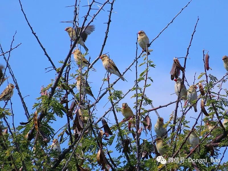 下图黑褐织雀正好在我住的房前有个巨大的群巢,它们不怕人,飞来飞去,定神凝望,真是好有趣。