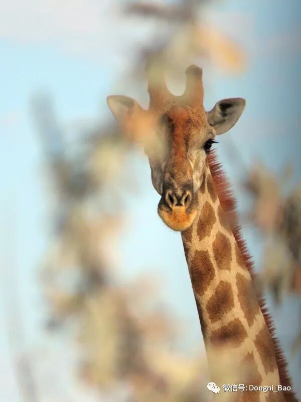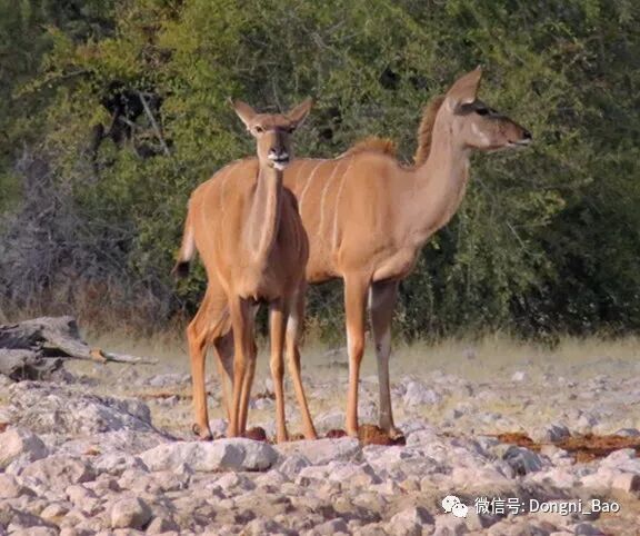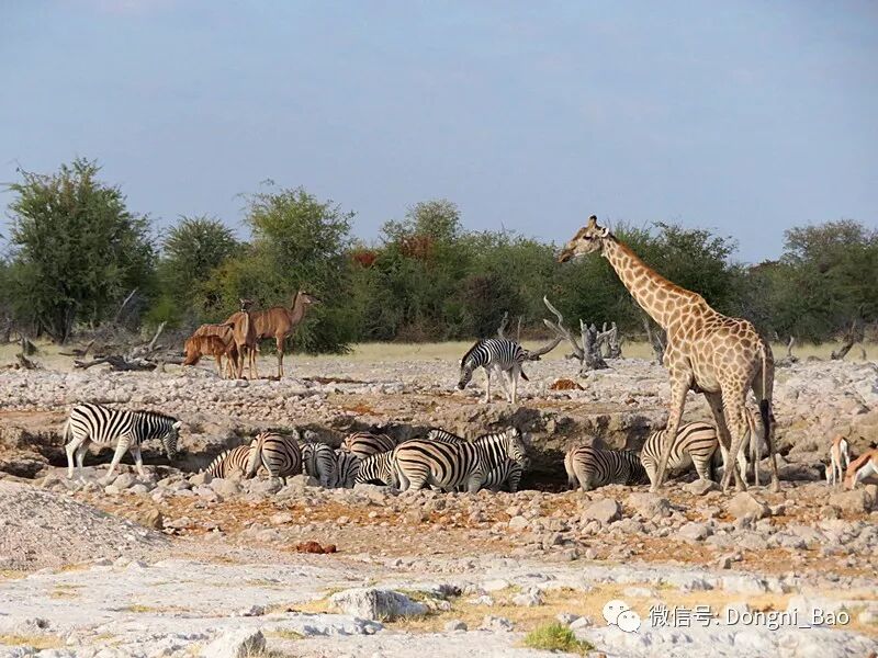 长颈鹿是非常悠闲自在的动物,它高高在上的良好视野,让它悠然自得地吃金合欢树顶的嫩叶。而转角林羚特别害羞谨慎,它们总是安静地、悄悄地在晨曦中去空无一物的水塘喝水(下图)。