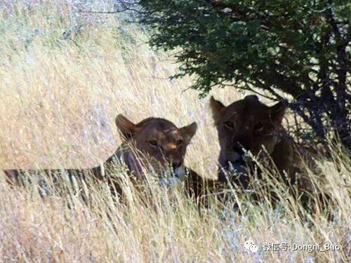 纳米比亚有十个国家公园,埃托沙是最著名、最大的一个,22270平方公里的土地在冬季干旱的季节一片枯黄色,白昼日照强烈,可最高上升到30度,考察车走过暴土扬长,连狮子大中午也怕热,躲在树荫下不肯出来。急得我们开玩笑,想把队友扔下车,逗狮子们抖擞一下精神。当然,这是万万不能的!