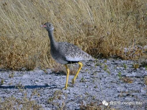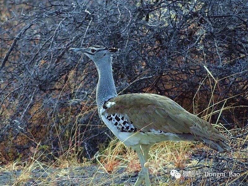 下图灰颈鹫鸨,也叫南非大鸨,据说这是最大的飞行鸟。