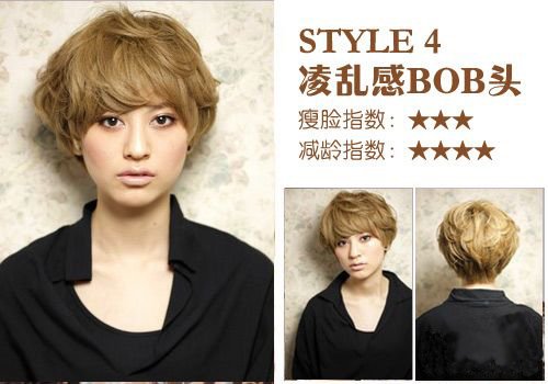 小编点评:如果是短发的MM,或者走个性路线的美眉们,可以尝试利用发流创造小脸的效果。利用卷发棒,将头上的发束做出蓬松感和凌乱感,瞬间头发的整体体积变大,相对于路出的脸蛋就变得更小,瞬间达到小脸的效果。因为凌乱的发流更加引人注目,很容易将人的视线转移到发流的艺术感上,而忽略了脸型大小比较的事上。忘却了大小脸的不同,哪里还有大小脸的分别呢?!