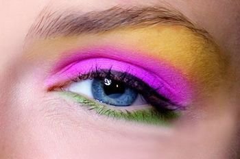你可以大胆地用鲜艳颜色对撞出明媚眼神,但要注意选择亚光质地的眼影,否则会俗气。