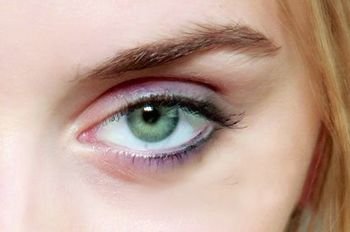 Step2 把带珠光的淡紫色眼影淡淡地扫在上下眼睑,尽量用眼影刷把色彩晕均匀。