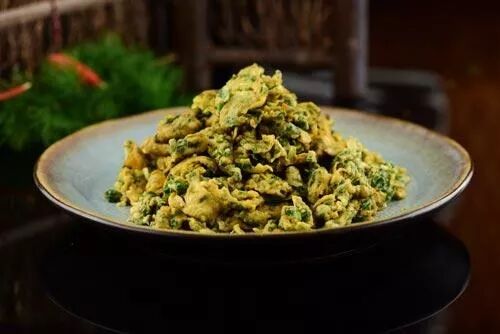 3.热锅下油,油热后将鸡蛋糊倒入锅内,翻炒至鸡蛋嫩熟,装盘即可。