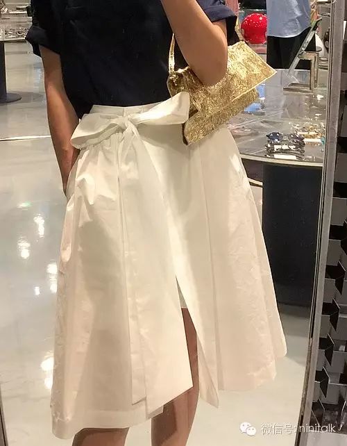 因为身高的关系,本人以前是不露大腿会死星人,但现在也不知是年纪大了还是风向变了,越来越对长点的裙子感兴趣。这条总体感觉偏休闲,但开叉加里面的短裤又有点低调的性感,腰间蝴蝶结就更是我喜欢的。
