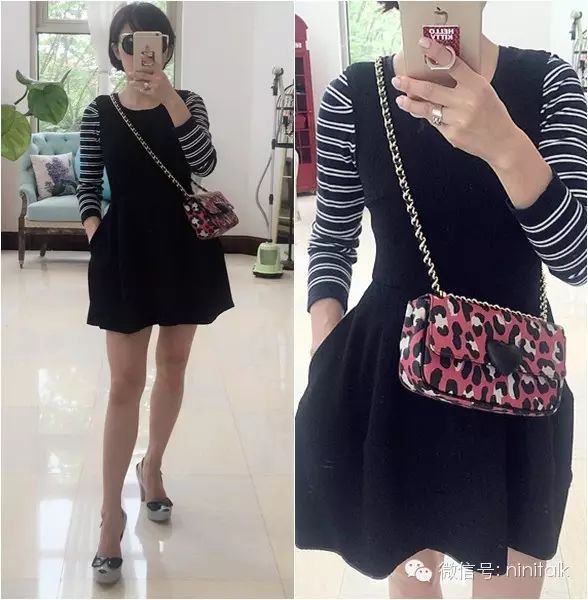 衣服裙子都是自家的,裙子早就卖完了,针织内搭是秋装,最近冷得也找出来穿了。鞋子依然是雨天的好盆友Melissa,Moschino的包包也是防水材质的。