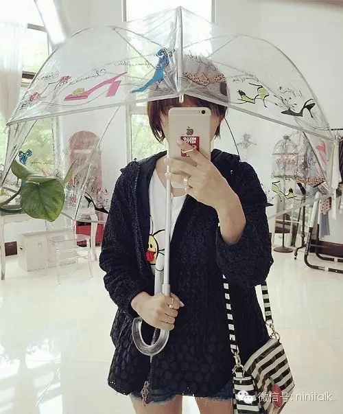 这把伞也挺可爱的,来自美国品牌totes,他们的招牌就是这种泡泡形状的透明伞。我选了上面印满高跟鞋这款,完全写着老娘的名字好么!