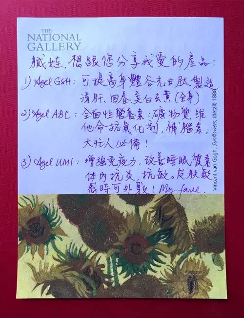 所以经常有人问什么里面才含有褐藻醣胶呢?我也私底下去问了林医生,结果她很热情地寄了三盒agel美容啫喱给我,并附上一张小小的说明: