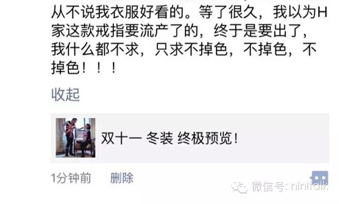 在《双十一 冬装 终极预览》中我请大家转发微信并截图发过来,要送出三枚戒指,结果收到很多感人的留言,实在是很难选,在这边先说声谢谢大家的支持和鼓励!