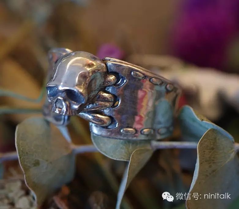 富有想象力的设计师了解大叔的喜好,还另外设计了一款带有骷髅头的款式,完全可以跟绑带款一起作为情侣对戒。