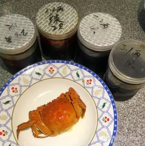 寄来的时候是分开瓶装的,有密封好并标明了每款的尺寸,里面的蟹都泡在调料里。我第一时间先开了最大的一只。图片没对比看不出大小,不过这只3.1两的是真心大,很有存在感。