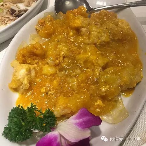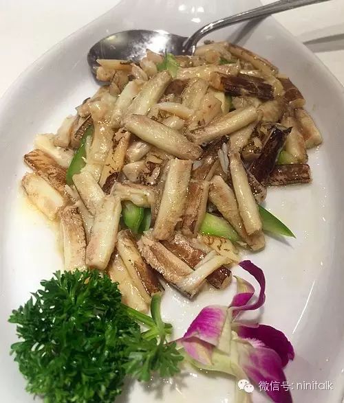 然而因为每道菜味道都是一样的,当这盘蟹膏炒银皮端上来的时候我们都有点被打闷了,加上蟹膏本身就是比较腻的,婆婆都开始直接喝醋来解腻了。