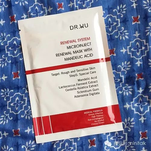 这个面膜就是用低浓度的杏仁酸配合多种补水保湿成分,以美白亮肤为诉求,就算是敏感皮肤也可以安心使用。