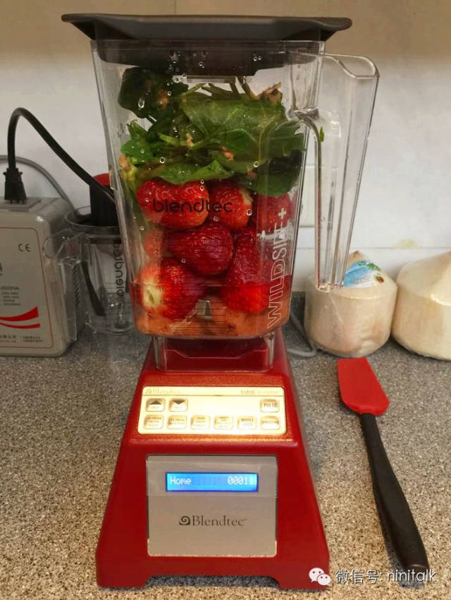 这台Blendtec我是一年前入手的,第一次介绍是在《超级食品羽衣甘蓝脆片和排毒果汁》中,上面的液晶小屏幕记录着使用次数,当时才用过11次呢,到现在已经用了393次,也算是比较高频使用的厨房家电了吧。