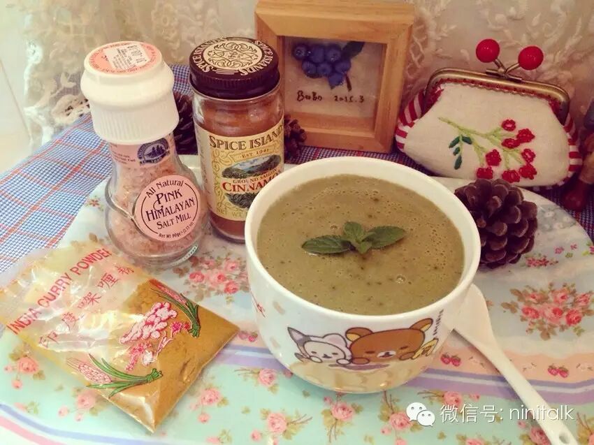 所以我的减肥食谱里只是加入了咖喱粉,一点点香料的粉末热量是可以忽略不计的,却可以给浓汤增加迷人的风味和诸多有益健康的原素。