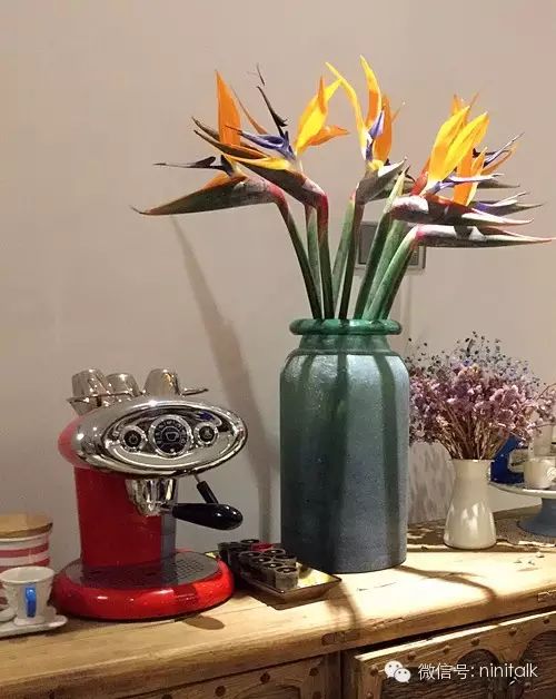 天堂鸟也是很耐插的花,随便摆上两三个星期也能维持花型。