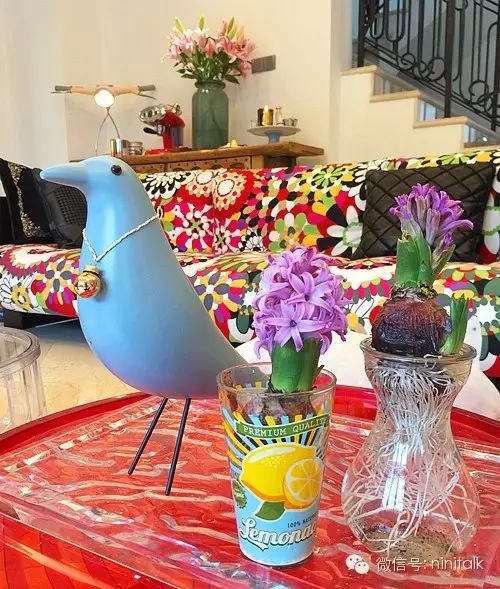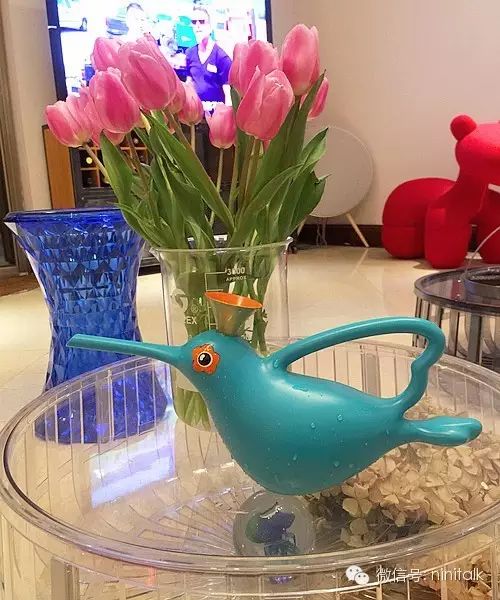 像郁金香、绣球花这一类的很喜欢水,如果室内有暖气的话要经常给它们加水才会开得好,这次我在新加坡买了个胖鸟的水壶回来,头上是个小漏斗方便灌水进去,摆在家里做装饰也很可爱的,是来自法国的品牌PYLONES。