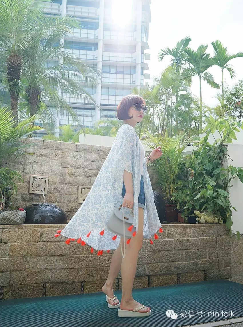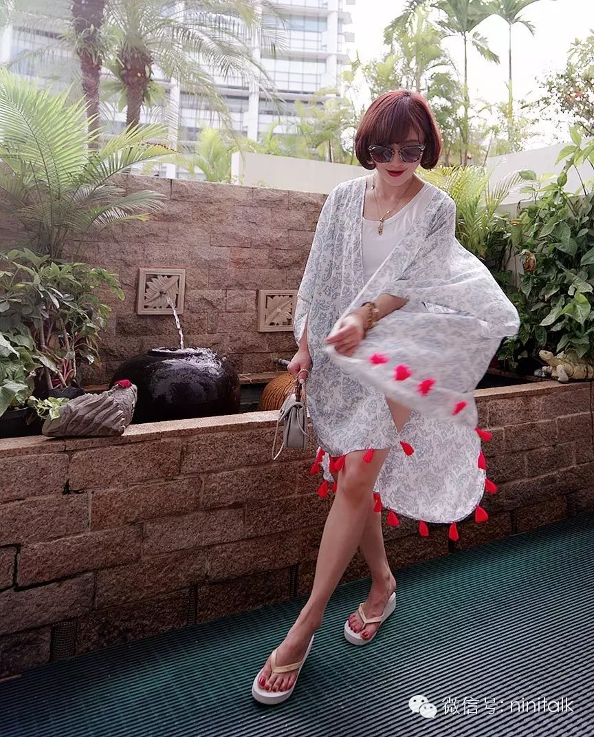 我自己夏天坐飞机的时候也喜欢批这样一件,特别舒服又能抵抗空调。它的面料是百分百人棉,手感和垂坠性俱佳,素雅的花色配上活泼的小流苏真的是。。。完美!