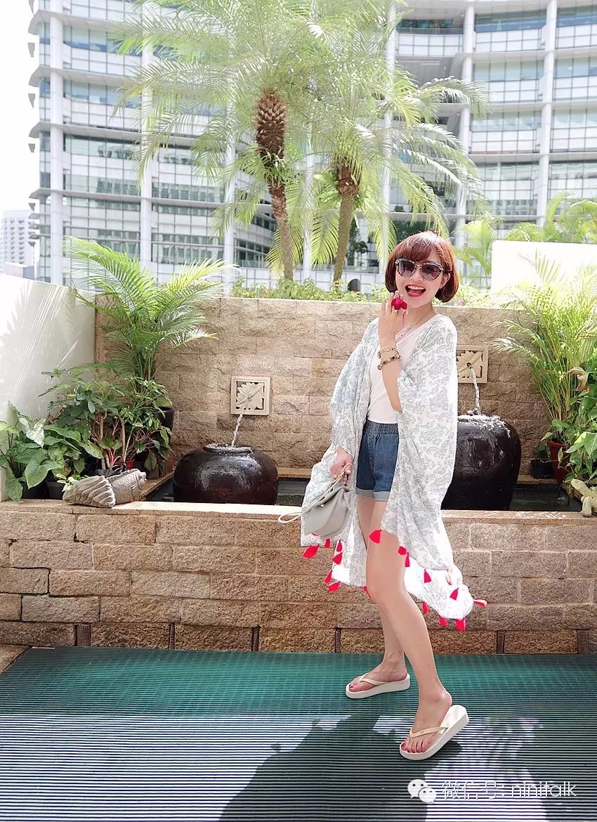 在视频里悦怡姐姐还为大家示范了用它当成三角巾来围,搭配皮衣真是不要太帅气啊,时髦人的度假style呼之欲出。