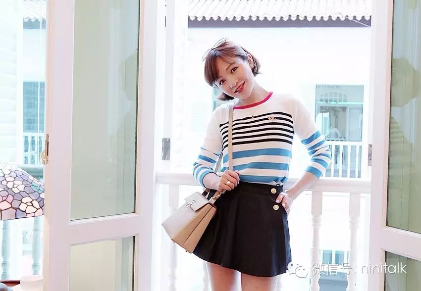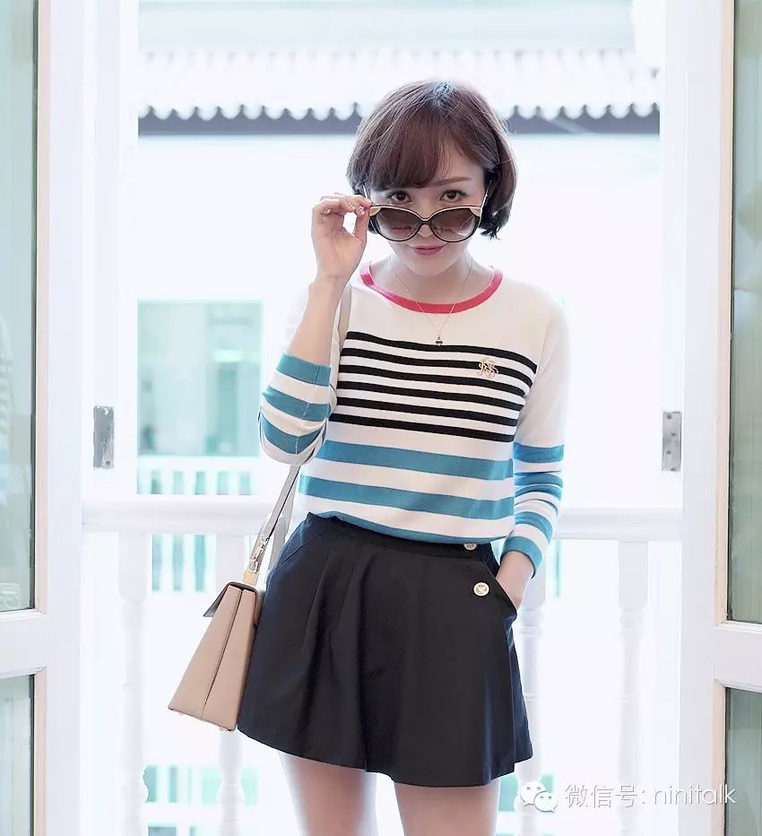 平胸妹穿条纹衫那是天然的时髦感,但很多大胸妹子会担心胸口把条纹撑变形了,看到E CUP悦怡姐姐的示范你们应该放心了吧: