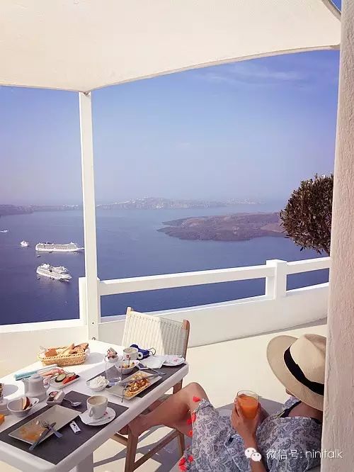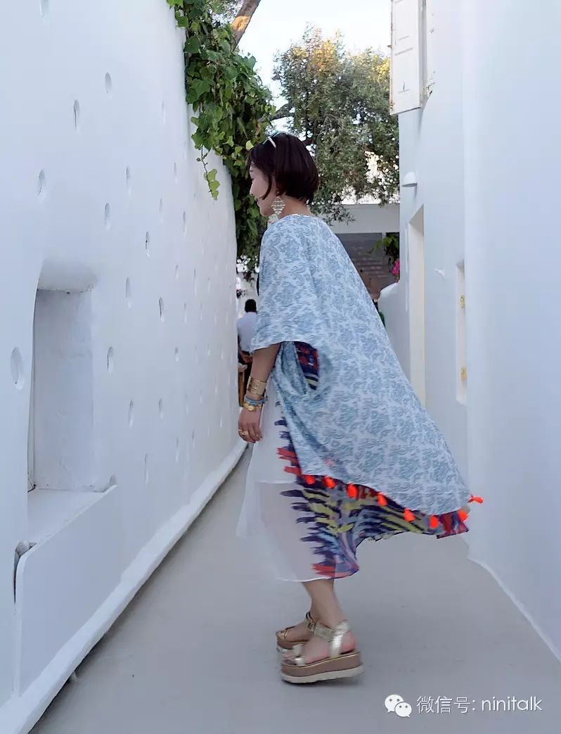 这件披肩承载着太多美好的回忆了,每次看到这张照片我就会想起在希腊岛上那几天神仙般的日子。虽然当时也是忙着拍摄夏装,没法像普通观光客那样到处去游玩,但是光每天早上能对着这样一片美景吃早餐,已经感觉像在天堂一般了。