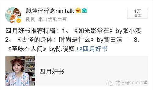 获取方法非常简单,只要关注我的新浪微博@腻娃碎碎念ninitalk,评论并转发上面截图这条推荐好书的视频,就有机会被抽中哦~