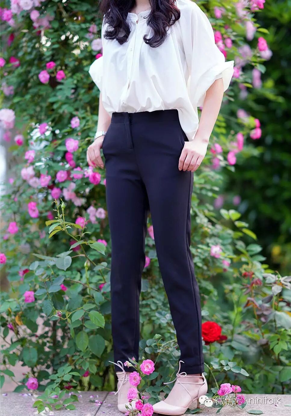 就连KK自己也更喜欢把裤脚挽起来穿,觉得这样更加干练。总之呢两个style你都可以尝试,根据不同的场合和需求去穿出不同的风格。