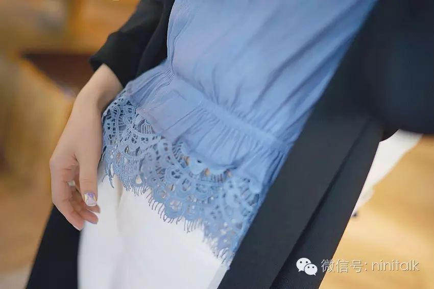 本期呼声最高的这件上衣也是我个人的最爱之一,宽大的荷叶袖有遮手臂的功效,高腰的设计打造黄金比例,再加上下摆精致的水溶蕾丝,具有浮雕般的精致艺术感,无论搭配什么下装都很好看。