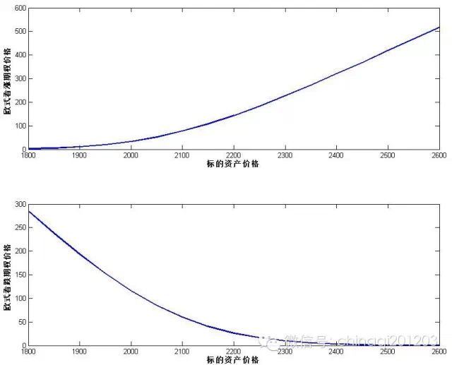 还可以分析期权价格与影响期权价格因素(标的资产价格、行权价格、到期时间、无风险利率、标的资产波动率)之间的关系,比如分析期权价格与标的资产价格的关系,如下图