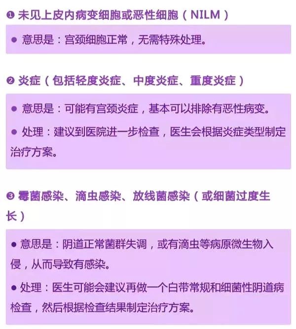 出现以上症状后,需到医院经过严谨周密的宫颈癌筛查,根据检查报告进行确诊,仅仅通过“看”是不能够确诊的!但对于最后拿到手的宫颈癌筛查报告,很多人不亚于面对一份数学试卷。如何去看懂他们呢?