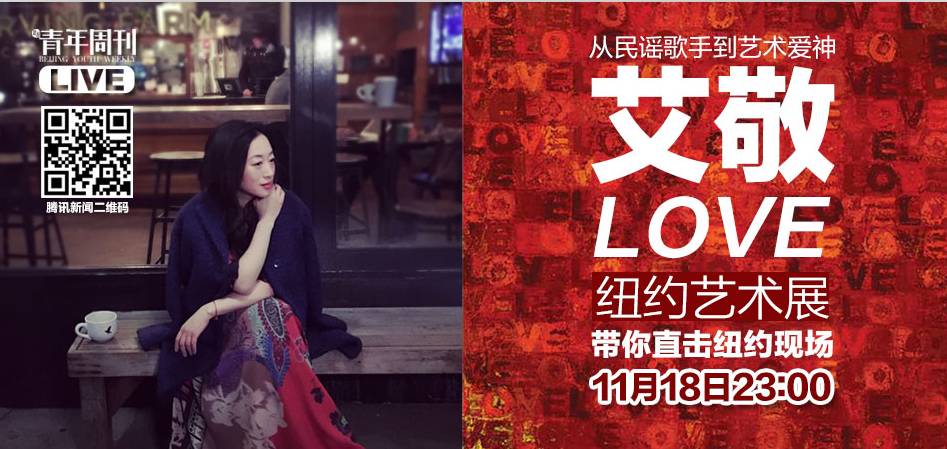 今晚23:00,《北京青年》周刊现场直击“艾敬love纽约艺术展”,我们愿和你一起被爱的精神缠绕!扫描二维码,即可提前预定。