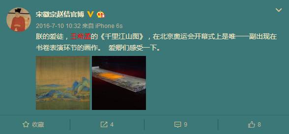 历史博主@宋徽宗赵佶:微博红人,“宋徽宗赵佶官博”皮下,cos宋徽宗,以皇帝口吻与网友交流,当然不是乱称”朕“,他的微博干货满满,处处点梗。