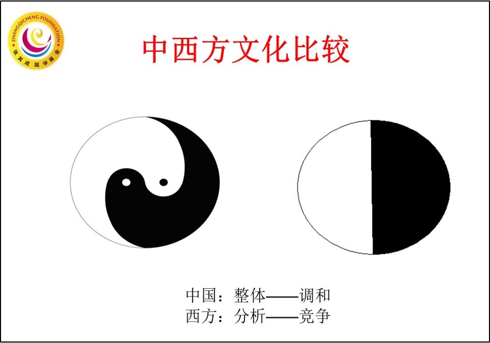 张院长讲座中对易道精髓的绝妙解读,也让我们在增广见闻之际深为感佩。张院长说,易道精髓莫过于太极图。在文化上,相较于西方文化常常以鲜明的对立为特点,中国文化的核心价值是八卦式的中正、和谐。