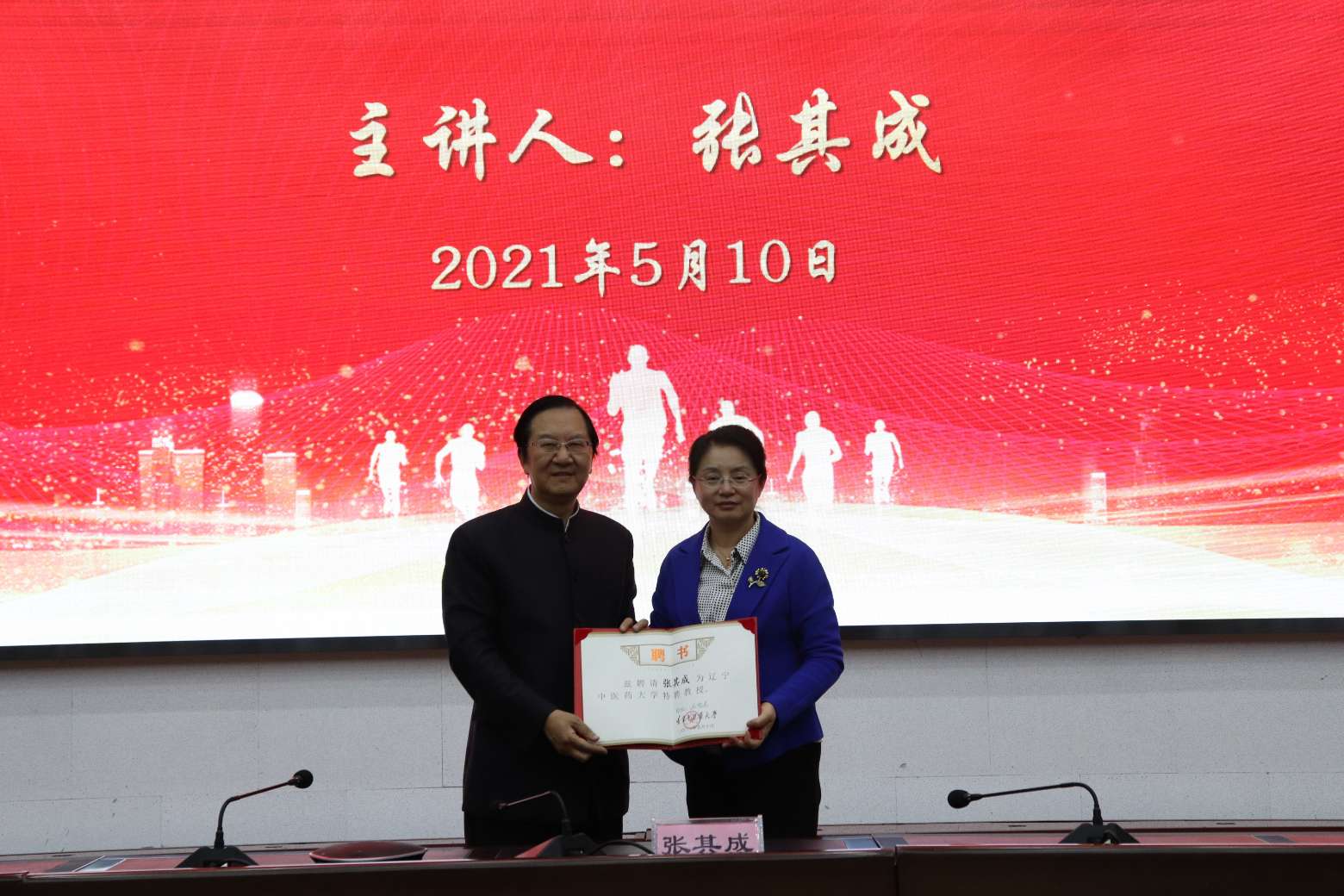 辽宁中医药大学党委书记石岩、校长吕晓东、郑洪新教授等领导参加了聘任仪式。在聘任仪式上石岩书记给予张教授在学术上、政治上、人格上很高评价,并为张其成教授颁发聘书。