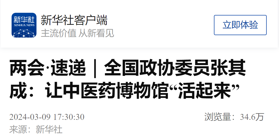 新华社|全国政协委员张其成:让中医药博物馆“活起来”