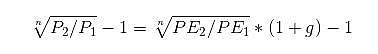 "当PE2=PE1时,股票年化收益率刚好等于每股收益增长率"