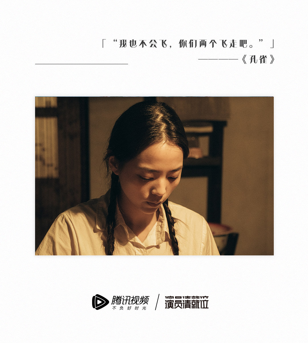 除了这张清冷气质的“倔强脸”足够抓人以外,薇薇给纳兰留下深刻印象的则是她隐忍节制又不失爆发力的表演方式。她的爆发力并不体现在声嘶力竭的台词与夸大的肢体,而是注重通过眼神、表情等细节的把控,以情绪内驱与引导角色,实现令人信服的表演。同样是在《孔雀》这段里,薇薇饰演的妹妹从拿到哥哥还回的糖时几分不可置疑的错愕,到带有些许羞愧的拥抱,再到亲手剥糖塞给哥哥时的疼惜,几度情绪的转换控制的毫无痕迹,也让现场不少观众和评委都无法抑制的落泪——这才是真正好演员的高级之处。