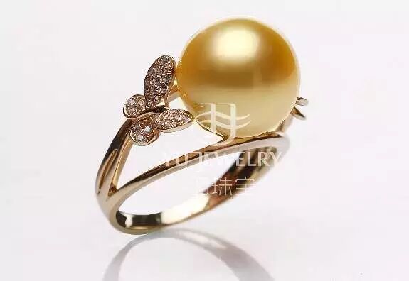 (羽珠宝高级定制14K蝶恋花南洋金珠戒指)